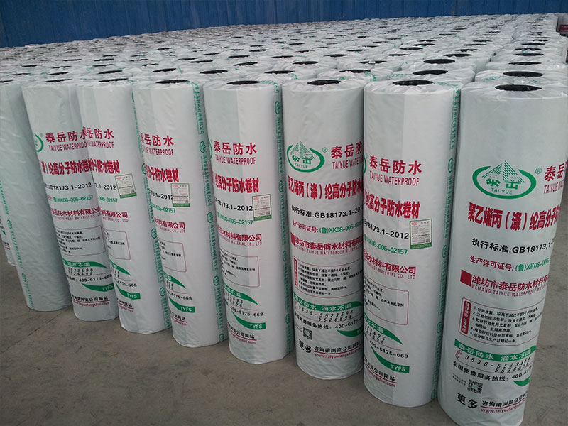 高分子聚乙烯丙綸(滌綸)防水卷材是采用聚乙烯、高強丙(滌)綸無紡布、紫外線隔光劑、抗老化劑等高分子原料,由自動化生產線一次性擠出成型加工制成。卷材中間層是防水層和防老化層,上下兩面是增強粘結層,牢固、可靠、無翹邊、無空鼓,雙層防水,是一種新型的防水材料。