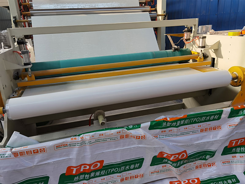 TPO防水卷材全稱為熱塑性聚烯烴,是一種以采用先進聚合技術(shù)將乙丙(EP) 橡膠與聚丙烯結(jié)合在一起的熱塑性聚烯烴(TPO) 材料為基料,以聚酯纖維網(wǎng)格織物做胎體增強材料構(gòu)成,并采用先進加工工藝制成的片狀可卷曲的防水材料。該材料既具有乙丙(EP) 橡膠的長期耐候性和耐久性,又具聚丙烯的可焊接性,兩層TPO材料中間夾一層聚酯纖維織物,可增強其物理性能,提高其斷裂強度、抗疲勞和抗穿刺能力。增強層上表面TPO有高反射性的以白色為主的淺色光滑表面。